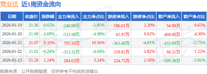 资金流向数据方面,本周竞业达主力资金合计净流出6.55万元,游资资金合计净流入332.13万元,散户资金合计净流出325.58万元。本周资金流向一览见下表:
