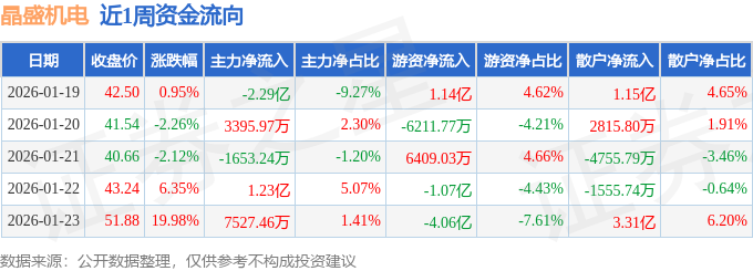 资金流向数据方面,本周晶盛机电主力资金合计净流出1292.27万元,游资资金合计净流出3.97亿元,散户资金合计净流入4.1亿元。本周资金流向一览见下表:
