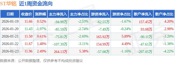 证券之星消息,截至2026年1月23日收盘,ST华铭(300462)报收于11.96元,较上周的11.6元上涨3.1%。本周,ST华铭1月23日盘中最高价报11.98元。1月21日盘中最低价报11.34元。ST华铭当前最新总市值21.67亿元,在计算机设备板块市值排名84/84,在两市A股市值排名5093/5182。