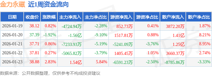 资金流向数据方面,本周金力永磁主力资金合计净流出1.73亿元,游资资金合计净流出8056.33万元,散户资金合计净流入2.53亿元。本周资金流向一览见下表: