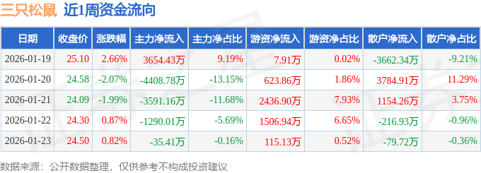 资金流向数据方面,本周三只松鼠主力资金合计净流出5670.93万元,游资资金合计净流入4690.74万元,散户资金合计净流入980.19万元。本周资金流向一览见下表: