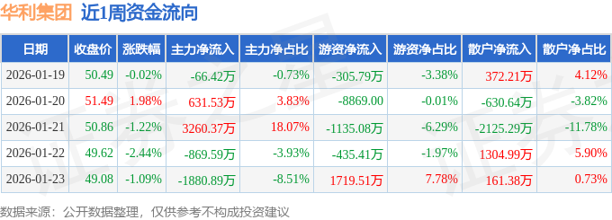 资金流向数据方面,本周华利集团主力资金合计净流入1074.99万元,游资资金合计净流出157.64万元,散户资金合计净流出917.35万元。本周资金流向一览见下表: