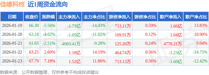 资金流向数据方面,本周佳缘科技主力资金合计净流出5651.37万元,游资资金合计净流入2126.09万元,散户资金合计净流入3525.28万元。本周资金流向一览见下表: