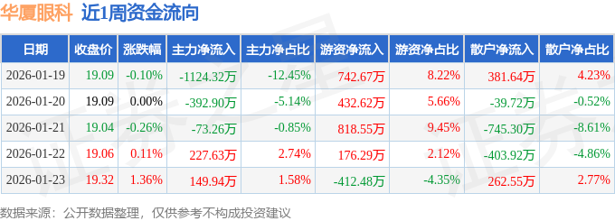 资金流向数据方面,本周华厦眼科主力资金合计净流出1212.91万元,游资资金合计净流入1757.65万元,散户资金合计净流出544.75万元。本周资金流向一览见下表: