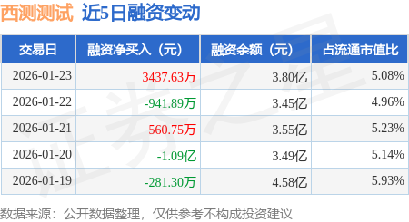 证券之星消息,1月23日,西测测试(301306)融资买入1.41亿元,融资偿还1.06亿元,融资净买入3437.63万元,融资余额3.8亿元。