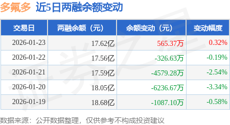 证券之星消息,1月23日,多氟多(002407)融资买入1.76亿元,融资偿还1.71亿元,融资净买入544.03万元,融资余额17.58亿元。