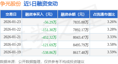 证券之星消息,1月23日,争光股份(301092)融资买入1149.11万元,融资偿还1205.4万元,融资净卖出56.29万元,融资余额7835.88万元。