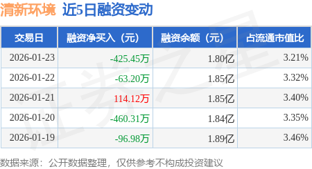 证券之星消息,1月23日,清新环境(002573)融资买入510.28万元,融资偿还935.73万元,融资净卖出425.45万元,融资余额1.8亿元。