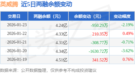 证券之星消息,1月23日,英威腾(002334)融资买入2317.64万元,融资偿还3267.88万元,融资净卖出950.24万元,融资余额4.24亿元。