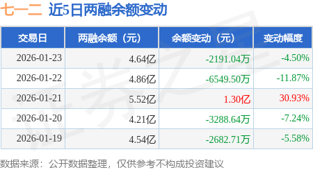 证券之星消息,1月23日,七一二(603712)融资买入6764.8万元,融资偿还8939.95万元,融资净卖出2175.15万元,融资余额4.63亿元。