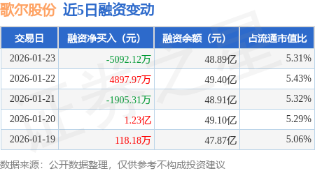 证券之星消息,1月23日,歌尔股份(002241)融资买入3.17亿元,融资偿还3.67亿元,融资净卖出5092.12万元,融资余额48.89亿元,近20个交易日中有12个交易日出现融资净买入。