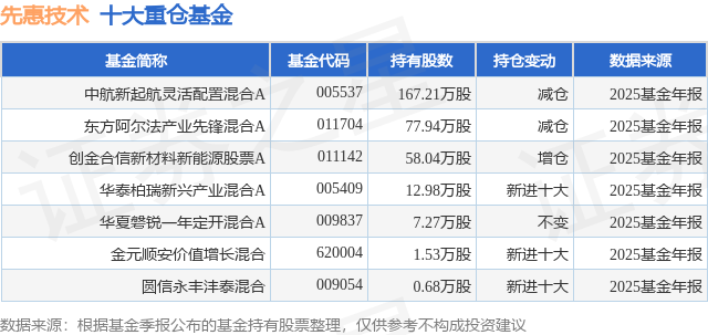 重仓先惠技术的公募基金请见下表: