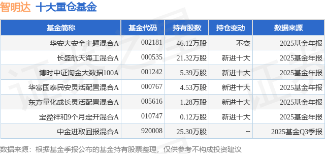 重仓智明达的公募基金请见下表: