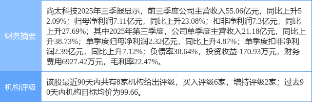2025年10月28日,东吴证券研究员曾朵红,阮巧燕发布了对尚太科技的研报《2025年三季报点评:Q3业绩符合预期,盈利提升可期》,该研报对尚太科技给出“买入”评级,认为其目标价为126.0元,研报发布时股价为83.52元,预期涨幅为50.86%。证券之星数据中心根据近三年发布的研报数据计算,该研报作者对此股的盈利预测准确度为67.02%。