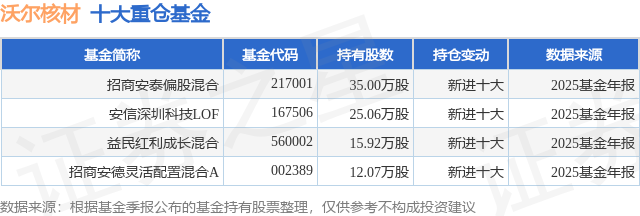 根据2025基金年报公募基金重仓股数据,重仓该股的公募基金共4家,其中持有数量最多的公募基金为招商基金的招商安泰偏股混合。招商安泰偏股混合目前规模为3.43亿元,最新净值0.4868(1月23日),较上一交易日上涨2.29%,近一年上涨38.57%。该公募基金现任基金经理为张西林 李正伟。张西林在任的基金产品包括:招商安博灵活配置混合A,管理时间为2018年6月14日至今,期间收益率为50.01%;招商均衡成长混合A,管理时间为2022年9月14日至今,期间收益率为11.75%;招商安弘灵活配置混合A,管理时间为2025年6月9日至今,期间收益率为21.46%。