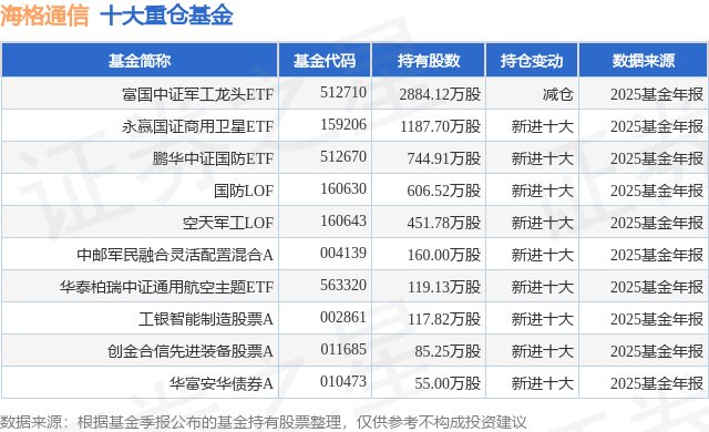 重仓海格通信的前十大公募基金请见下表: