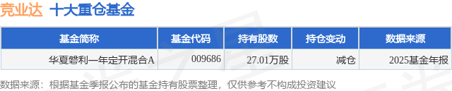 根据2025基金年报公募基金重仓股数据,重仓该股的公募基金共1家,其中持有数量最多的公募基金为华夏基金的华夏磐利一年定开混合A。华夏磐利一年定开混合A目前规模为1.49亿元,最新净值2.1378(1月23日),较上一交易日上涨1.51%,近一年上涨50.72%。该公募基金现任基金经理为张城源。张城源在任的基金产品包括:华夏磐泰混合(LOF)A,管理时间为2016年12月26日至今,期间收益率为84.35%;华夏磐锐一年定开混合A,管理时间为2020年12月22日至今,期间收益率为97.23%;华夏磐益一年定开混合,管理时间为2021年1月26日至今,期间收益率为68.68%。