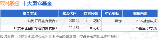 重仓双林股份的公募基金请见下表: