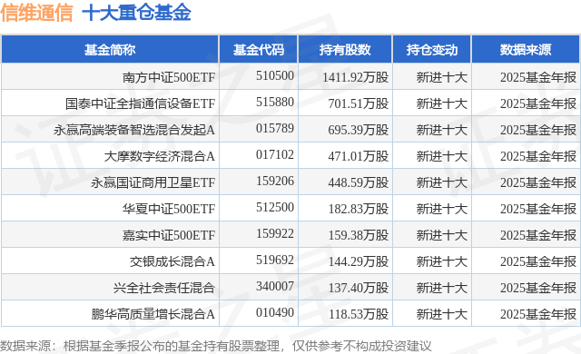 根据2025基金年报公募基金重仓股数据,重仓该股的公募基金共114家,其中持有数量最多的公募基金为南方基金的南方中证500ETF。南方中证500ETF目前规模为446.9亿元,最新净值8.6712(1月23日),较上一交易日上涨2.41%,近一年上涨56.5%。该公募基金现任基金经理为罗文杰。罗文杰在任的基金产品包括:南方中证500ETF联接(LOF)A,管理时间为2013年4月22日至今,期间收益率为185.49%;南方沪深300ETF,管理时间为2013年5月17日至今,期间收益率为156.6%;南方沪深300ETF联接A,管理时间为2013年5月17日至今,期间收益率为141.6%。