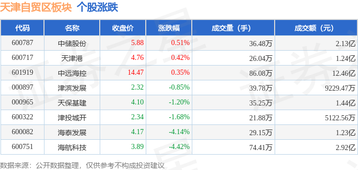 证券之星消息,1月26日天津自贸区板块较上一交易日上涨0.02%,中储股份领涨。当日上证指数报收于4132.61,下跌0.09%。深证成指报收于14316.64,下跌0.85%。天津自贸区板块个股涨跌见下表: