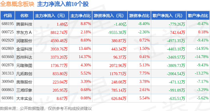 从资金流向上来看,当日全息概念板块主力资金净流出16.96亿元,游资资金净流入6.36亿元,散户资金净流入10.6亿元。全息概念板块个股资金流向见下表: