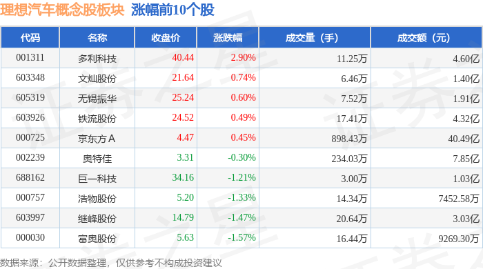 从资金流向上来看,当日理想汽车概念股板块主力资金净流出20.21亿元,游资资金净流入3.6亿元,散户资金净流入16.61亿元。理想汽车概念股板块个股资金流向见下表: