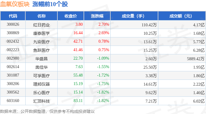 证券之星消息,1月26日血氧仪板块较上一交易日下跌0.72%,爱朋医疗领跌。当日上证指数报收于4132.61,下跌0.09%。深证成指报收于14316.64,下跌0.85%。血氧仪板块个股涨跌见下表:
