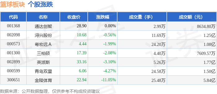 从资金流向上来看,当日篮球板块主力资金净流出1052.36万元,游资资金净流入2555.66万元,散户资金净流出1503.3万元。篮球板块个股资金流向见下表: