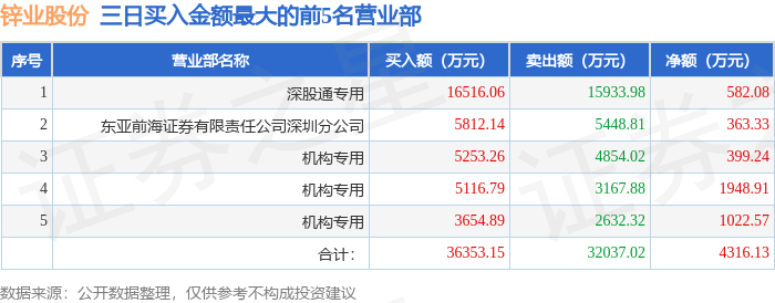 证券小知识:龙虎榜是交易所披露的竞价交易公开信息,现身龙虎榜的个股都是当日最为活跃的个股,是投资者日常重点关注的数据。交易所公布当日买入金额和卖出金额前五名的席位,其中一些席位代表特殊意义,如机构专用席位是指基金专用席位、券商自营专用席位、社保专用席位、券商理财专用席位、保险机构专用席位、保险机构租用席位、QFII专用席位等机构投资者买卖证券的专用通道和席位。深股通专用、沪股通专用为北向资金的交易席位。