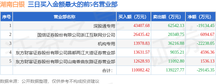 证券小知识:龙虎榜是交易所披露的竞价交易公开信息,现身龙虎榜的个股都是当日最为活跃的个股,是投资者日常重点关注的数据。交易所公布当日买入金额和卖出金额前五名的席位,其中一些席位代表特殊意义,如机构专用席位是指基金专用席位、券商自营专用席位、社保专用席位、券商理财专用席位、保险机构专用席位、保险机构租用席位、QFII专用席位等机构投资者买卖证券的专用通道和席位。深股通专用、沪股通专用为北向资金的交易席位。