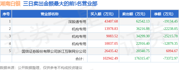 证券之星消息,沪深交易所2026年1月26日公布的交易公开信息显示,湖南白银(002716)因日涨幅偏离值达到7%的前5只证券,连续三个交易日内,涨幅偏离值累计达到20%的证券登上龙虎榜。此次是近5个交易日内第5次上榜。