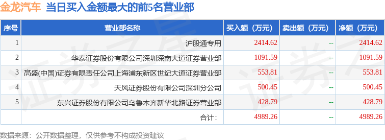 证券小知识:龙虎榜是交易所披露的竞价交易公开信息,现身龙虎榜的个股都是当日最为活跃的个股,是投资者日常重点关注的数据。交易所公布当日买入金额和卖出金额前五名的席位,其中一些席位代表特殊意义,如机构专用席位是指基金专用席位、券商自营专用席位、社保专用席位、券商理财专用席位、保险机构专用席位、保险机构租用席位、QFII专用席位等机构投资者买卖证券的专用通道和席位。深股通专用、沪股通专用为北向资金的交易席位。