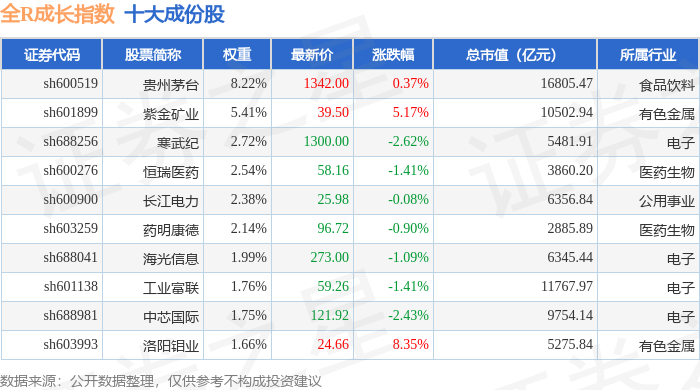 全R成长(000059)指数十大成份股详情如下: