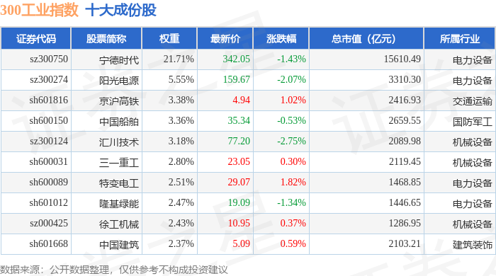 300工业(000910)指数十大成份股详情如下: