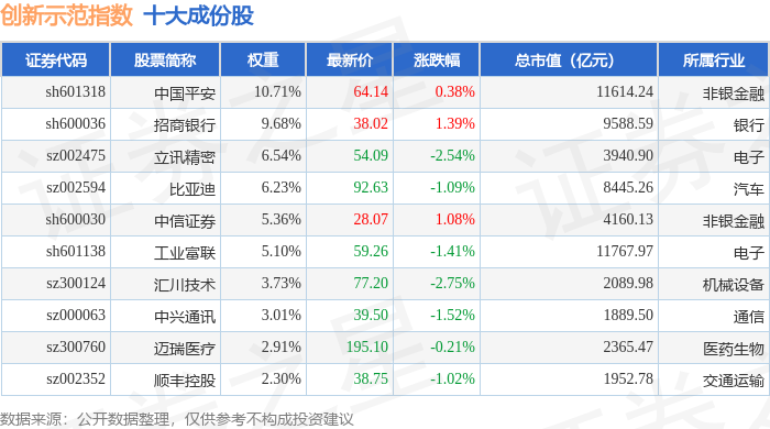 创新示范(399351)指数十大成份股详情如下: