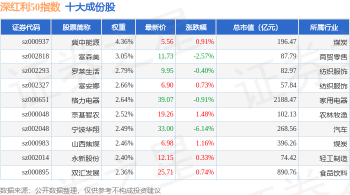 深红利50(399672)指数十大成份股详情如下: