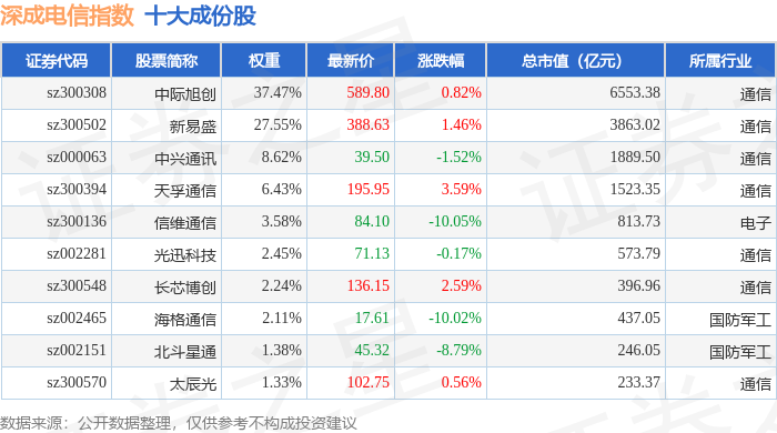 深成电信(399688)指数十大成份股详情如下: