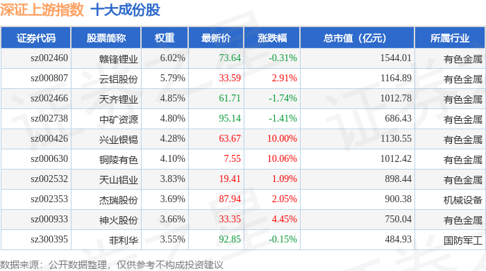深证上游(399704)指数十大成份股详情如下: