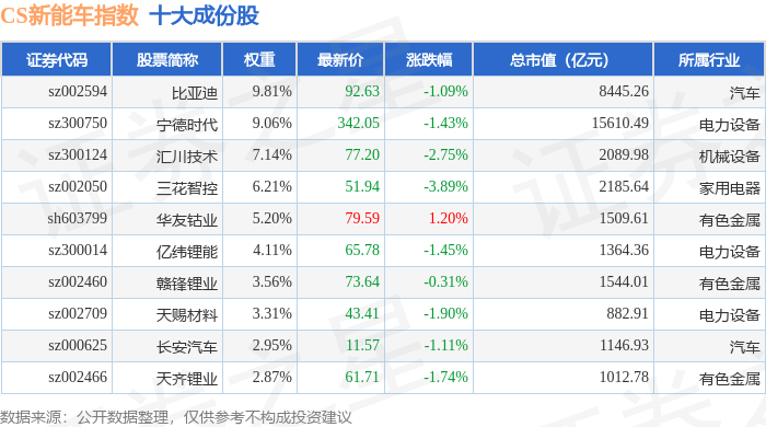 资金流向方面,CS新能车(399976)指数成份股当日主力资金净流出合计69.66亿元,游资资金净流入合计16.4亿元,散户资金净流入合计53.04亿元。成份股资金流向详情见下表: