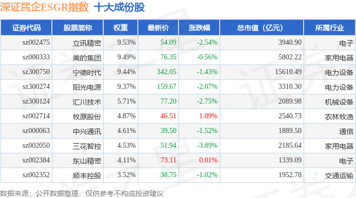 深证民企ESGR(470056)指数十大成份股详情如下: