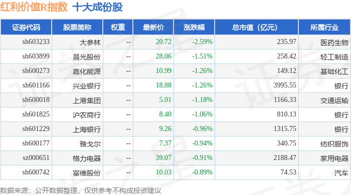 红利价值R(489016)指数十大成份股详情如下: