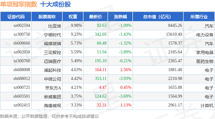证券之星消息,1月26日,单项冠军(980150)指数报收于8688.47点,跌0.98%,成交1825.27亿元,换手率3.08%。当日该指数成份股中,上涨的有12家,厦门钨业以9.97%的涨幅领涨,下跌的有38家,晶盛机电以10.6%的跌幅领跌。