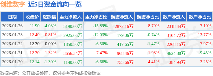证券之星消息,截至2026年1月26日收盘,创维数字(000810)报收于11.9元,下跌4.03%,换手率2.45%,成交量27.21万手,成交额3.27亿元。
