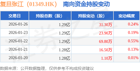 证券之星消息,1月26日南向资金增持31.3万股复旦张江(01349.HK)。近5个交易日中,获南向资金增持的有5天,累计净增持142.6万股。近20个交易日中,获南向资金增持的有13天,累计净增持144.2万股。截至目前,南向资金持有复旦张江(01349.HK)1.29亿股,占公司已发行普通股的39.63%。