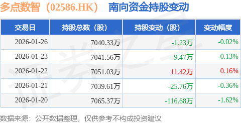 证券之星消息,1月26日南向资金减持1.23万股多点数智(02586.HK)。近5个交易日中,获南向资金减持的有4天,累计净减持141.72万股。近20个交易日中,获南向资金减持的有19天,累计净减持808.0万股。截至目前,南向资金持有多点数智(02586.HK)7040.33万股,占公司已发行普通股的7.5%。