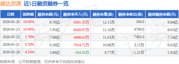 盛达资源融资融券信息显示,融资方面,当日融资买入1.88亿元,融资偿还1.05亿元,融资净买入8301.35万元,连续3日净买入累计2.19亿元。融券方面,融券卖出3500.0股,融券偿还3200.0股,融券余量12.13万股,融券余额687.12万元。融资融券余额8.84亿元。