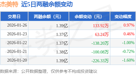 证券之星消息,1月26日,杰美特(300868)融资买入856.04万元,融资偿还722.12万元,融资净买入133.92万元,融资余额1.39亿元。