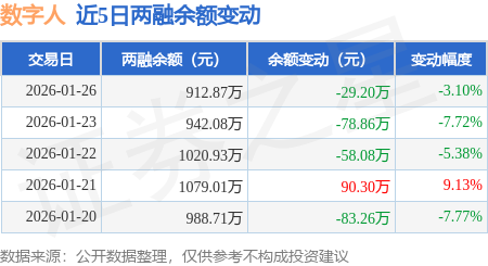 证券之星消息,1月26日,数字人(920670)融资买入56.48万元,融资偿还85.69万元,融资净卖出29.2万元,融资余额912.87万元。