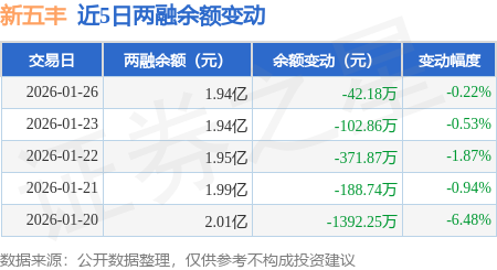 证券之星消息,1月26日,新五丰(600975)融资买入771.95万元,融资偿还814.03万元,融资净卖出42.07万元,融资余额1.93亿元。