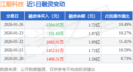 证券之星消息,1月26日,江顺科技(001400)融资买入6908.56万元,融资偿还8412.61万元,融资净卖出1504.05万元,融资余额1.72亿元。